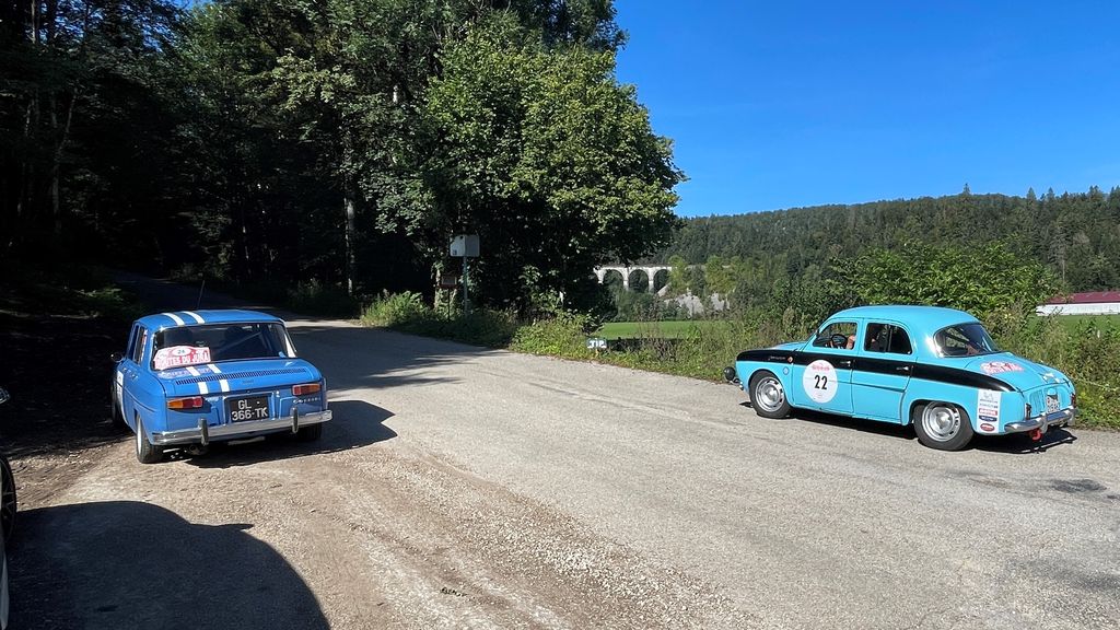 SAMEDI 2 septembre, gros morceau du rallye, 3 étapes absolument magnifiques (unanimité chez les habitués pour trouver cette édition la plus belle de toutes !). Les organisateurs ont répondu à l’attente d’aller dans le haut-Jura et ont poussé la malice jusqu’au poste frontière suisse. La vue des douaniers fait transpirer quelques concurrents, mais la frontière n’est pas franchie !