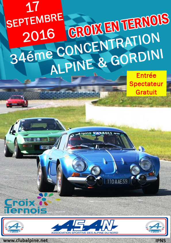 L’ASAN (Association Sportive des Alpine du Nord) vous propose sa 34e Concentration Alpine & Gordini le 17 Septembre à Croix en Ternois (62).