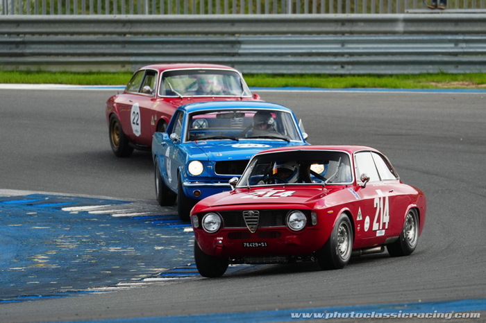 Nouveau match Etats-Unis / Italie au programme de la première course du meeting, le Classic Touring Challenge. Si les Alfa Romeo Giulia Sprint GTA avaient clairement l’avantage du nombre, John Spiers et Nigel Greensall n’ont rien laissé filer avec leur Ford Mustang, de quoi permettre au second nommé de fondre sur son compatriote Max Banks, avant de prendre l’avantage et remporter une superbe victoire. Dans le sillage de la Mustang bleue, pas moins de quatre Giulia Sprint GTA ont complété le top 5, le Belge François Rivaz et l’Allemand Alexander Furiani montant sur la plus petite marche du podium.