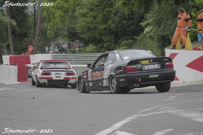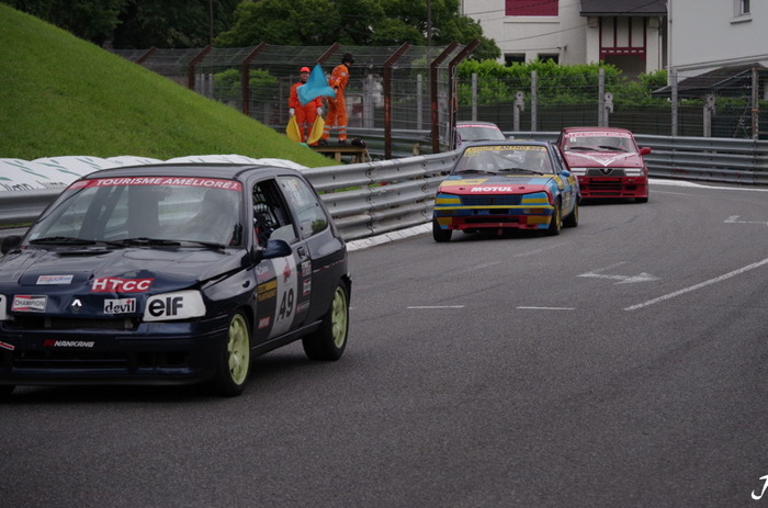 En Coupe Antho, Ruiz passe en tête devant Macé et Meynard. Au fur et à mesure que les tours passent, si pour le duo de tête les positions ne changent pas il en est tout autrement pour leurs poursuivants jusqu’au baisser du drapeau à damiers qui verra Lang prendre la 3ème place devant Codet, Pereira, Béziat, Chalon, Frugier, Berducq, Marie …….En Série victoire de la BM323 de Bourguignon devant la R5GT turbo de Accart et la 635 de Galmiche. En 505 les positions du départ restent inchangées avec Ruiz, Macé et Meynard .