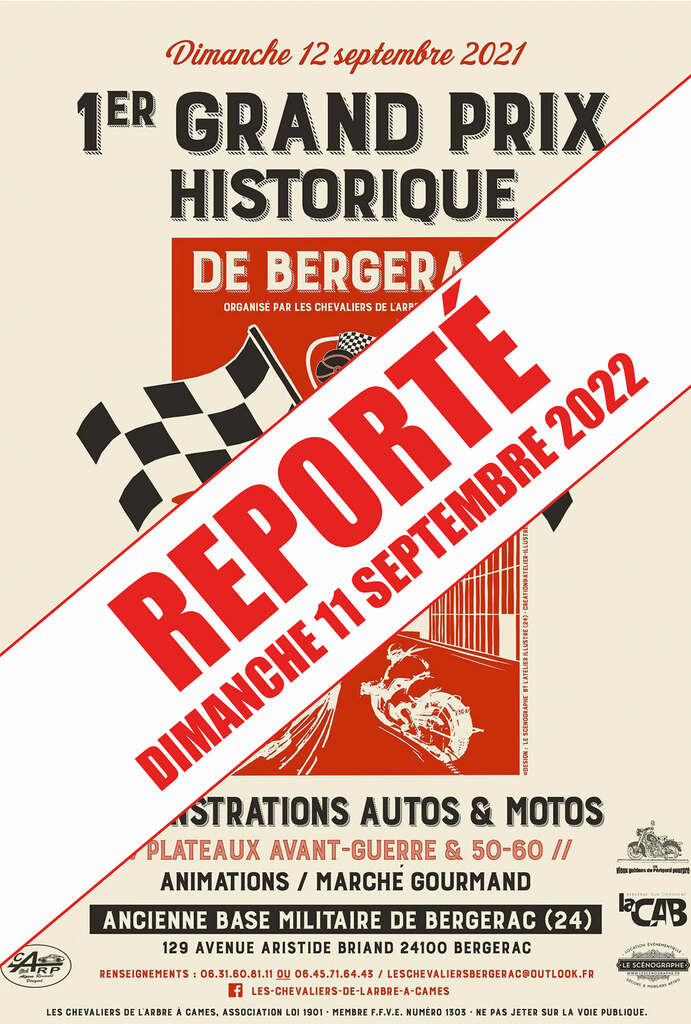 Le Club des Chevaliers de l’Arbre à Cames vous annonce le report du 1er Grand Prix Historique de Bergerac :