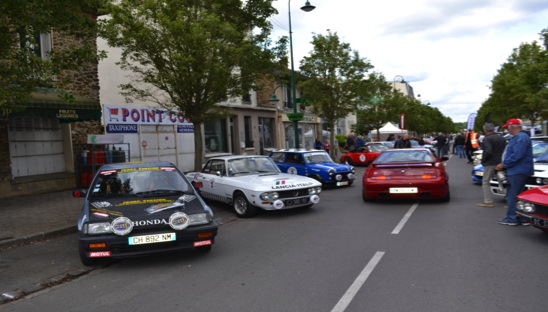 Après le briefing un petit déjeuner copieux était offert par la Municipalité et rassemblait tous les équipages prêts à en découdre, malheureusement trois équipages avaient déclaré forfait la veille ce qui aurait porté le rallye à 42 voitures, plus d’une cinquantaine de voitures en expo. Une foule à la fois bon enfant et passionnée et curieuse évoluait autour de magnifiques PORSCHE, FERRARI, MGA, PEUGEOT « 205 gti et 405 mi 16 » R8 GORDINI, ALPINE, TALBOT etc… posant des questions et prenant des photos.