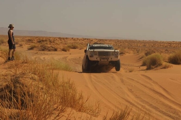 5ème étape entre Ouzina et Zagora : bacs à sable entrainant plusieurs plantage chez les petites voitures. il fait très chaud.