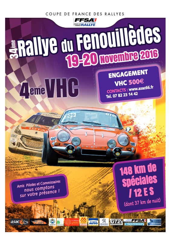 Le rallye du Fenouillèdes 2016 se disputait du 18 au 20 Novembre 2016 autour de l’Ille-sur-Têt dans les Pyrénées-Orientales, organisé par l’ASAC 66 et l’Association Team Cars.