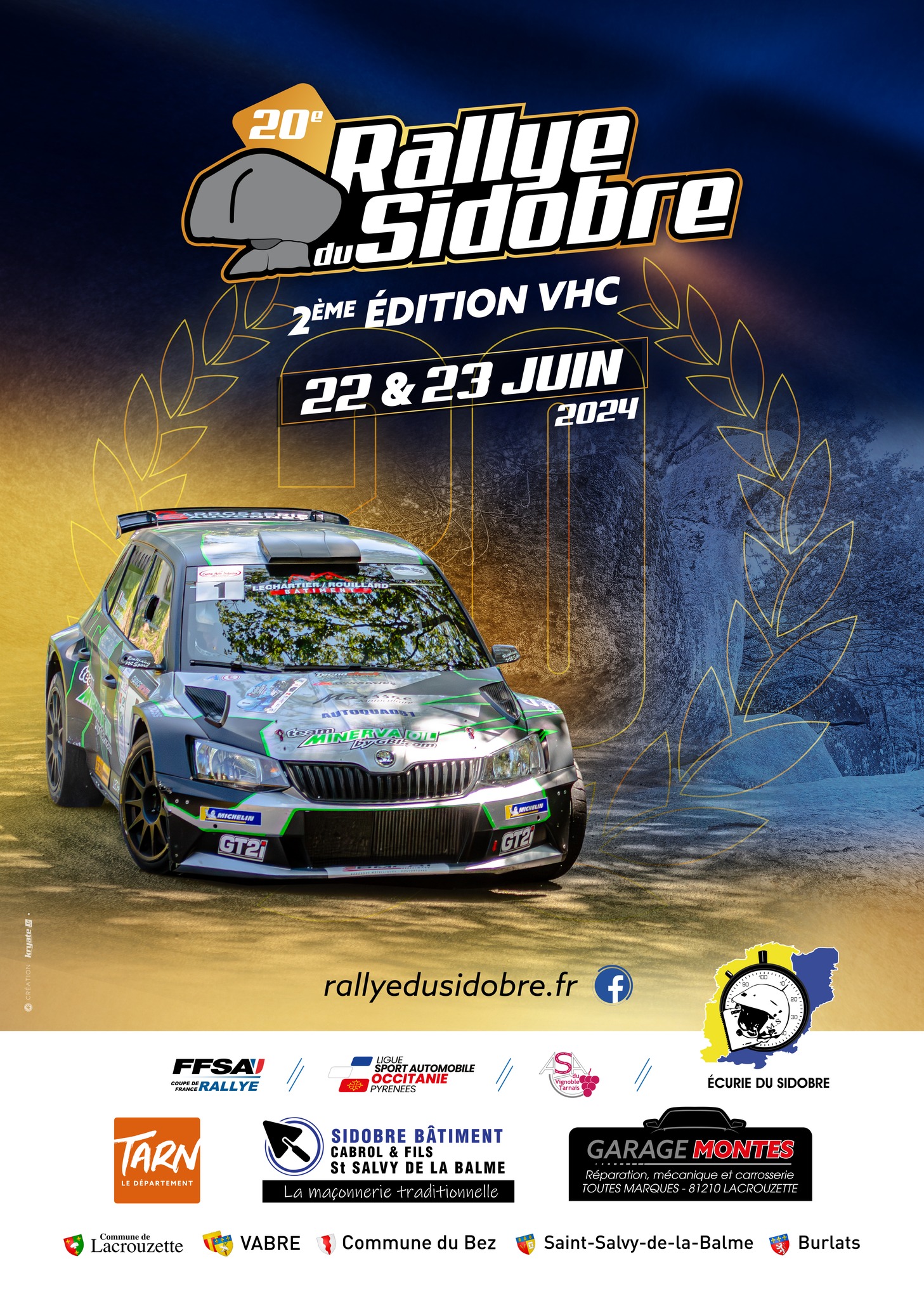 L’association Sportive du Vignoble Tarnais et l’écurie du Sidobre organisaient les 21 et 23 juin 2024 le 2e RALLYE V.H.C. en doublure du 20ème rallye régional du Sidobre