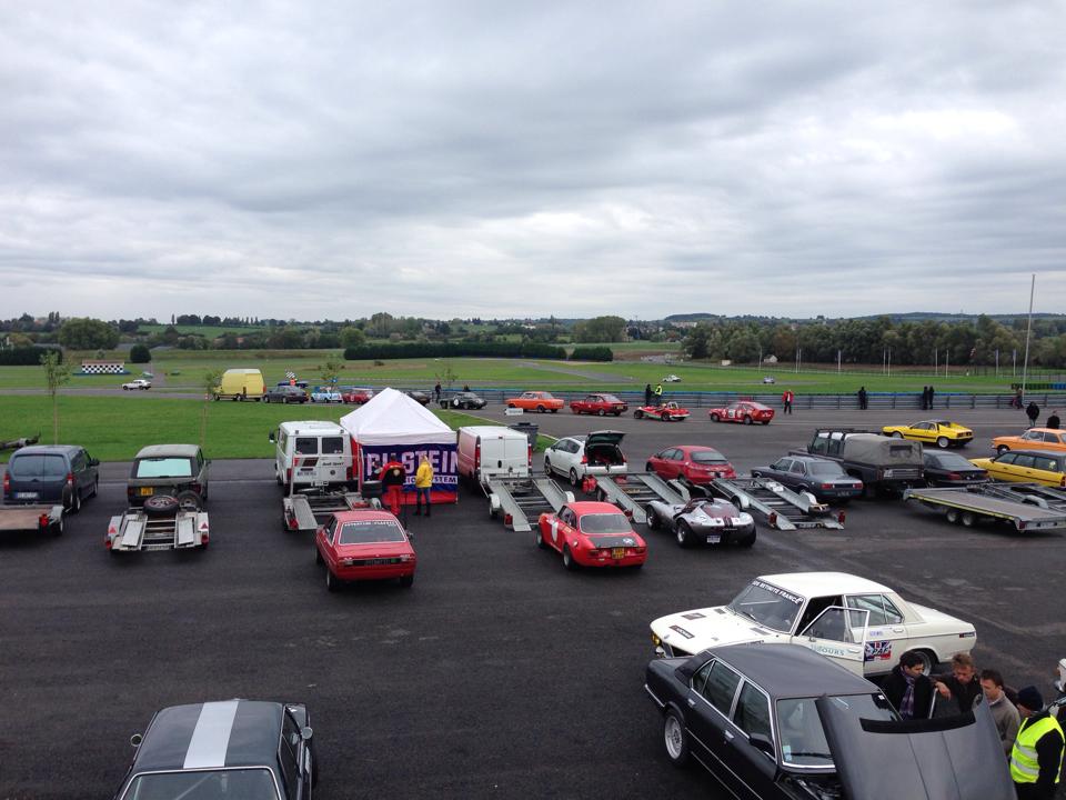 Les américaines faisaient d’ailleurs leur show avec entre autre la très belle Shelby GT350R de Daniel qui donnait la réplique à la non moins puissante Cheetah de Xavier. Il y avait aussi la première de certains qui, ayant vécu l’édition 2012 en « sac de sable », avaient remué ciel et terre pour être au volant en 2013. C’est le cas de Jean-Louis qui se joignait à nous avec sa Capri 2600GT ayant justement bien connue la terre, car c’est sur cette surface qu’ils avaient couru ensemble dans les années 80. Gardant les stigmates de cette vie trépidante, l’inusable Capri fit l’aller retour par la route et ne se ménageait pas en piste, malgré ses plus de 200 000km au compteur. Preuve que les autos que l’on aime sont « éternelles » !